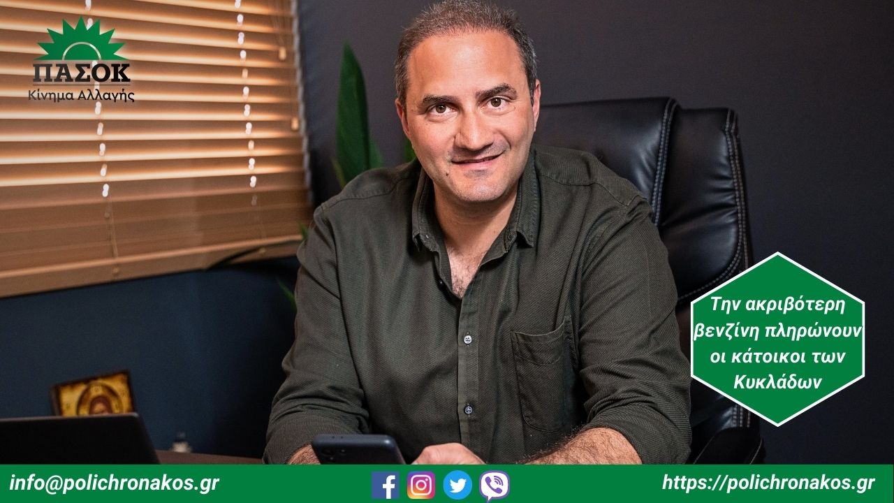 Στη νέα αύξηση των τιμών στα καύσιμα και ιδιαίτερα στην τιμή της αμόλυβδης βενζίνης, αναφέρεται με παρέμβαση του ο υπ. Βουλευτής Κυκλάδων και αν. Τομεάρχης Νησιωτικής Πολιτικής του ΠΑΣΟΚ κ. Γιάννης Πολυχρονάκος: