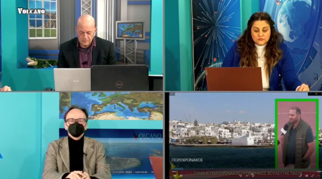 Ο υπ. Βουλευτής Κυκλάδων και αν. Τομεάρχης Νησιωτικής Πολιτικής ΠΑΣΟΚ κ. Γιάννης Πολυχρονάκος, κατά την διάρκεια της επίσκεψής του στο νησί της Σαντορίνης, παραχώρησε συνέντευξη στον τηλεοπτικό σταθμό VOLCANO TV.
